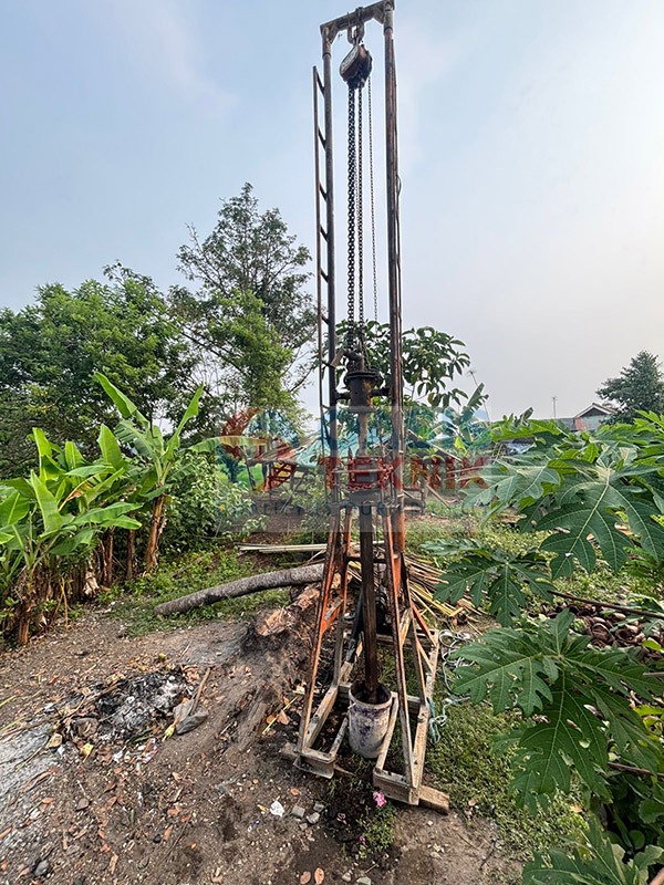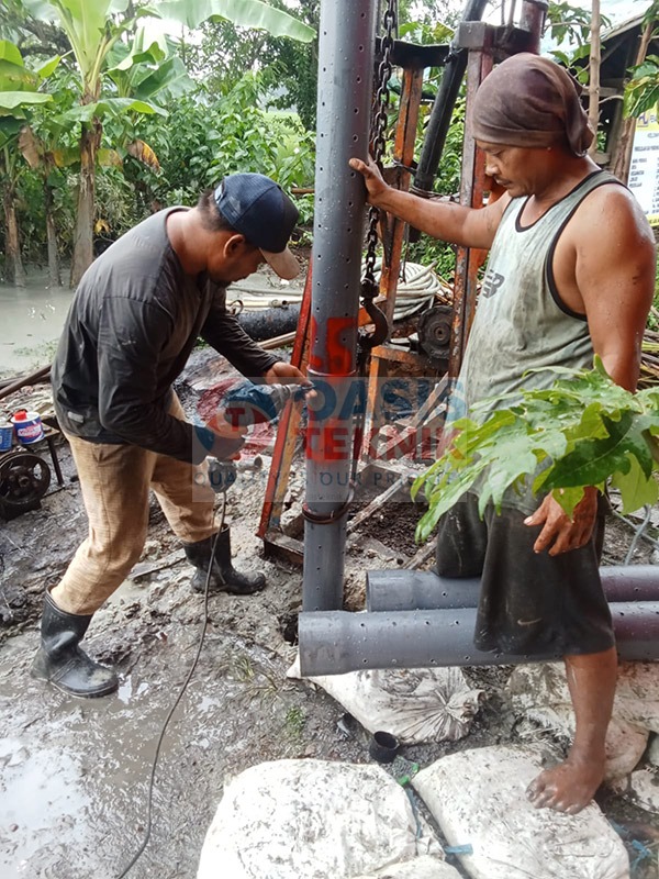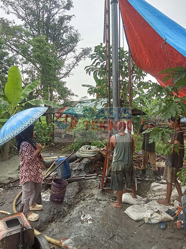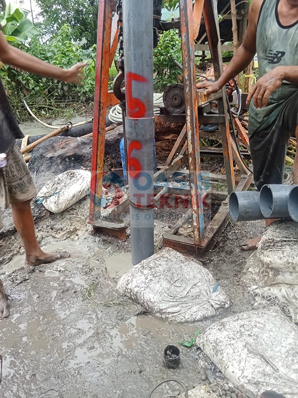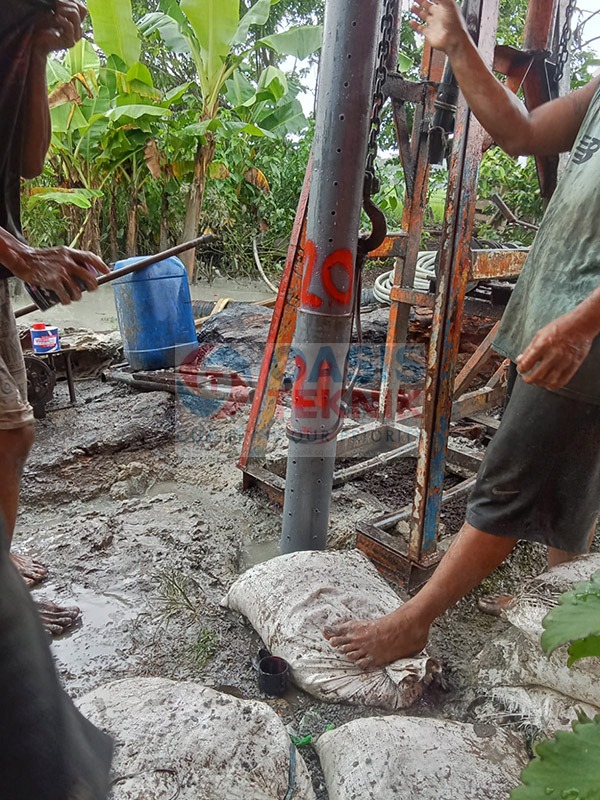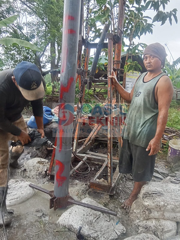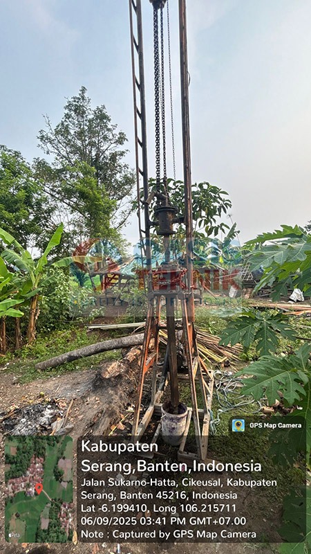 Proyek sumur bor di Desa Cimaung, Kecamatan Cikeusal, Kabupaten Serang dilaksanakan dengan kedalaman pengeboran mencapai 110 meter, menggunakan pipa PVC JIS berdiameter 5 inch. Berdasarkan hasil survei geologi, lokasi ini memiliki indikasi potensi gas, sehingga penerapan metode pengeboran dilakukan dengan perencanaan khusus demi menjaga keamanan dan keberhasilan pengambilan air.
