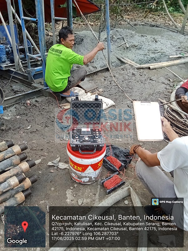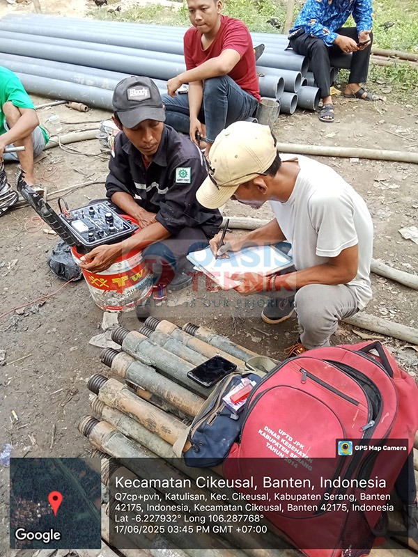 Proyek sumur bor di Desa Katulisan, Kecamatan Cikeusal, Kabupaten Serang dilakukan dengan spesifikasi teknis kedalaman pengeboran 100 meter menggunakan pipa PVC JIS berdiameter 5 inch. Berdasarkan analisis geologi, lokasi ini memiliki potensi gas alam, sehingga proses pengeboran dan penyaringan air dilakukan dengan sangat hati-hati untuk menjamin keamanan dan kualitas air yang dihasilkan.