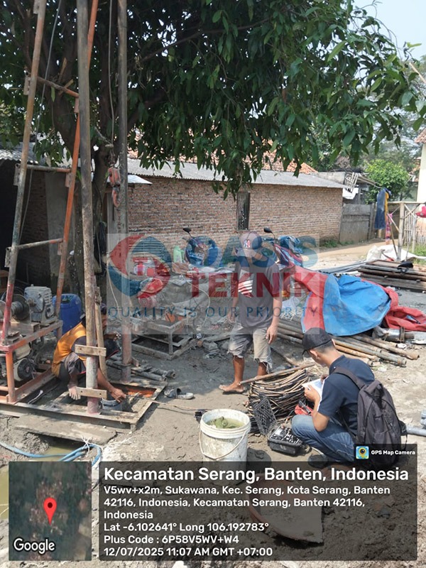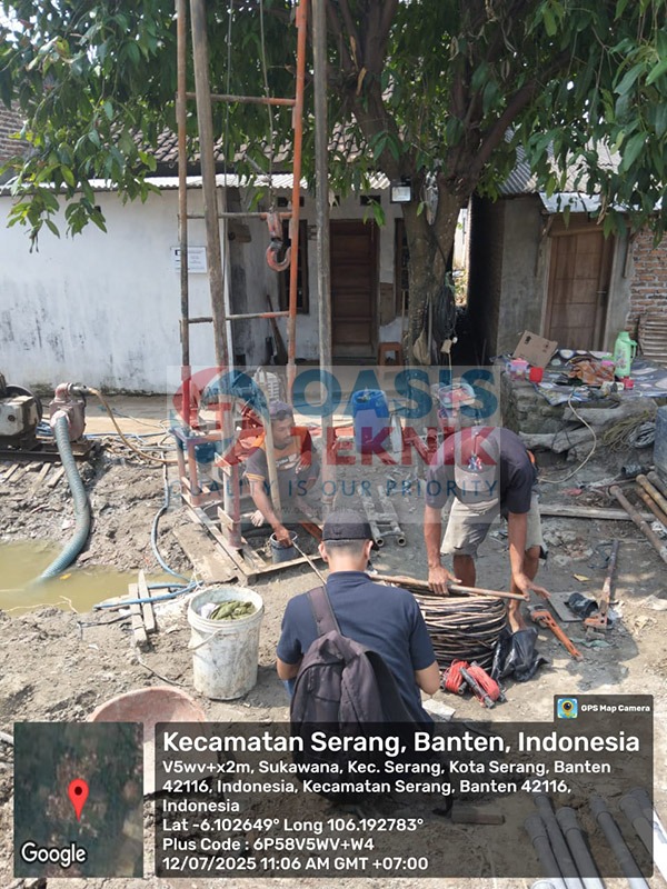Proyek sumur bor ini berlokasi di Kelurahan Sukawana, Kecamatan Serang, Kota Serang, dengan target kedalaman mencapai 100 meter. Pekerjaan dilakukan menggunakan pipa PVC berdiameter 6 inch dari permukaan hingga kedalaman 80 meter, kemudian dilanjutkan dengan pipa reducer 4 inch dari 80 hingga 100 meter. Pendekatan ini diterapkan untuk menyesuaikan dengan kondisi geologis dan sumber air di area tersebut.