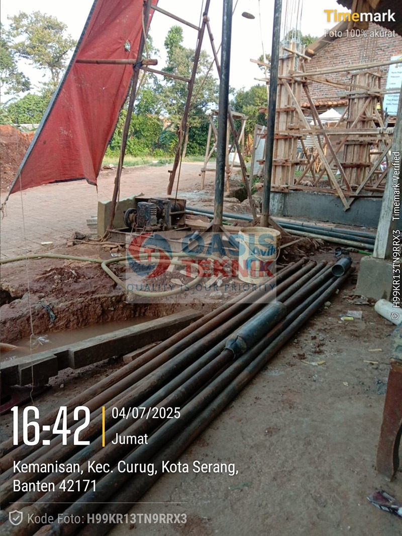 Proyek sumur bor ini dilaksanakan di Kelurahan Sukalaksana, Kecamatan Curug, Kota Serang, dengan kedalaman pengeboran mencapai 100 meter. Konstruksi sumur menggunakan pipa PVC berdiameter 6 inch yang dirancang khusus untuk menangani tekanan di lapisan dalam tanah. Pemilihan diameter dan material pipa tersebut disesuaikan dengan kondisi medan di lapangan yang didominasi oleh lapisan keras dan berbatu.