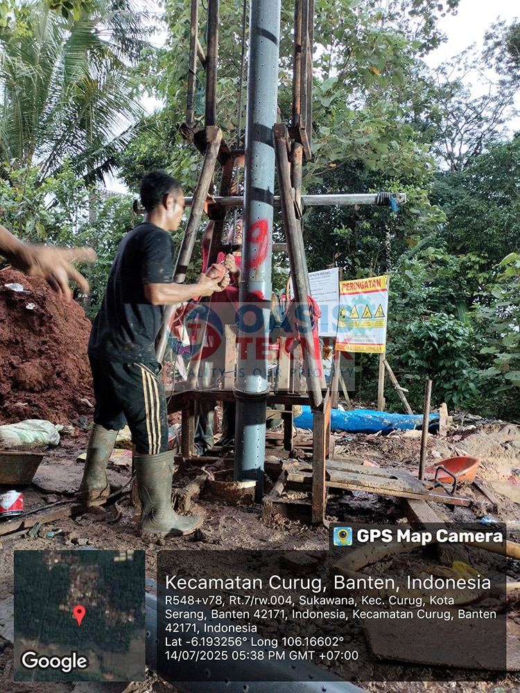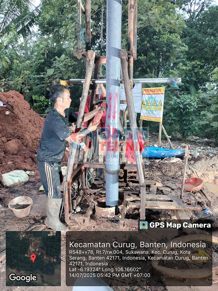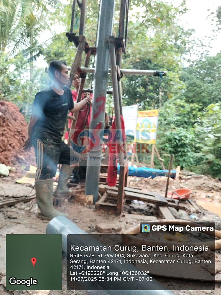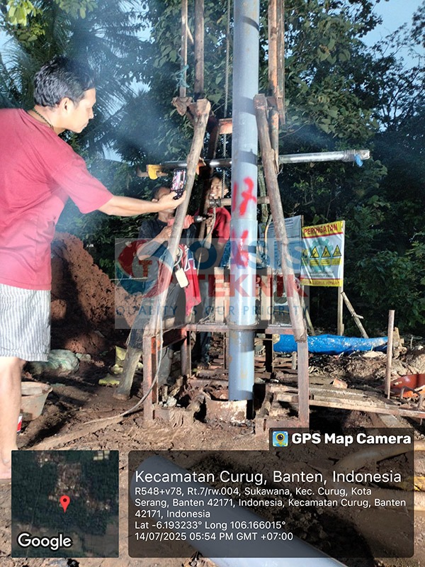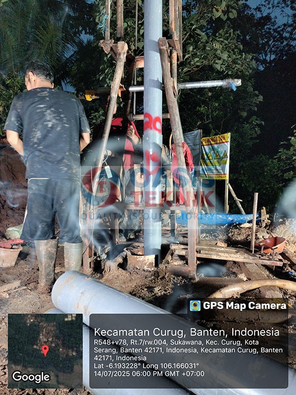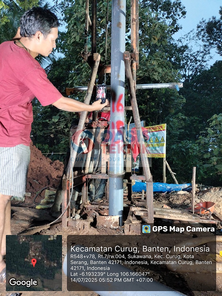 Proyek Sumur Bor di Kelurahan Sukawana, Kecamatan Curug, Kota Serang dilaksanakan sebagai bagian dari program penyediaan air bersih untuk masyarakat setempat. Dengan kedalaman pengeboran mencapai 100 meter dan menggunakan pipa PVC berdiameter 6 inch, proyek ini ditujukan untuk menjangkau lapisan akuifer yang berada di bawah formasi tanah keras dan bebatuan. Kondisi geologi yang cukup menantang membutuhkan penggunaan peralatan bor bertenaga tinggi serta tim teknis yang berpengalaman.