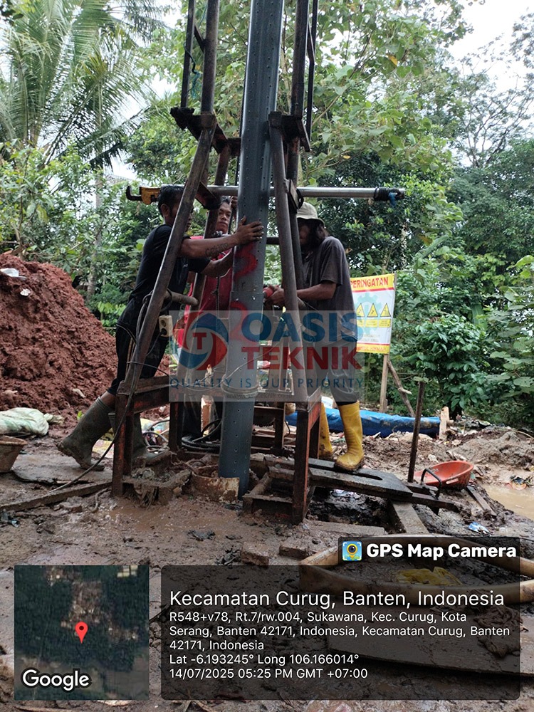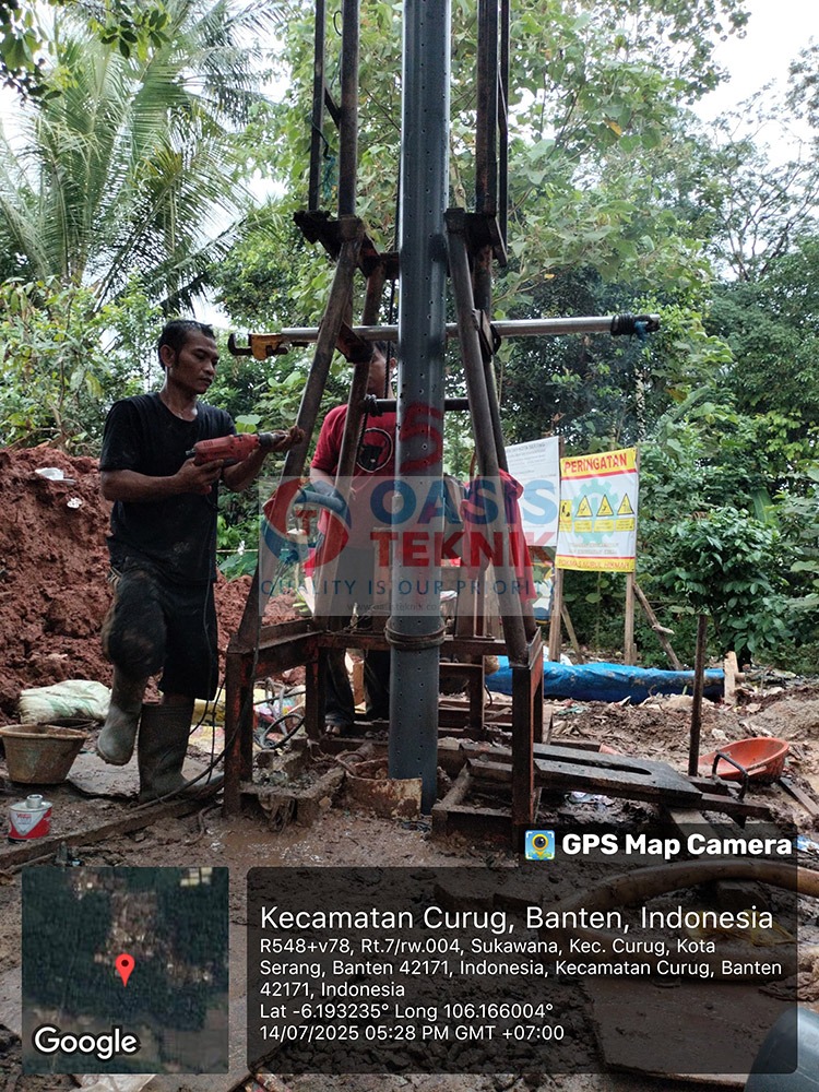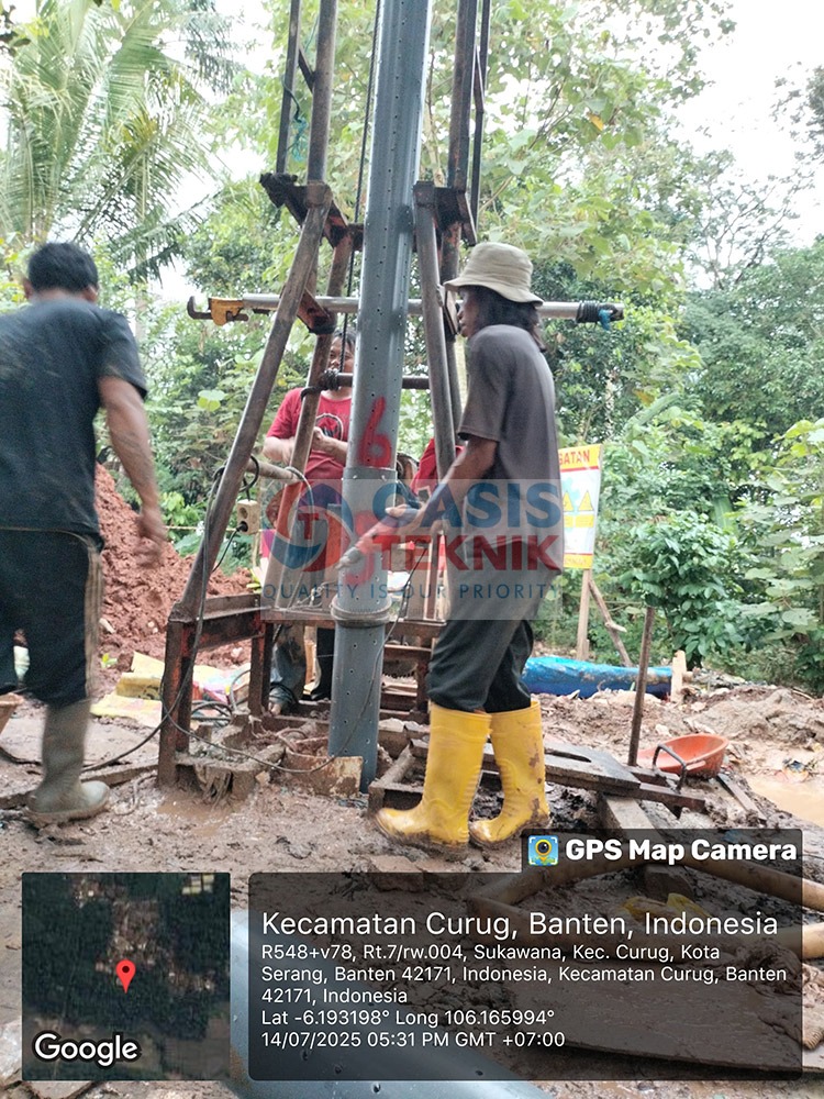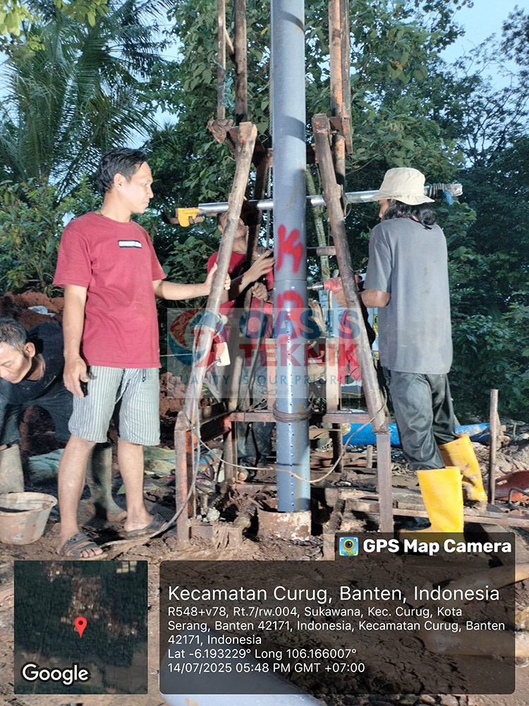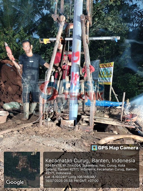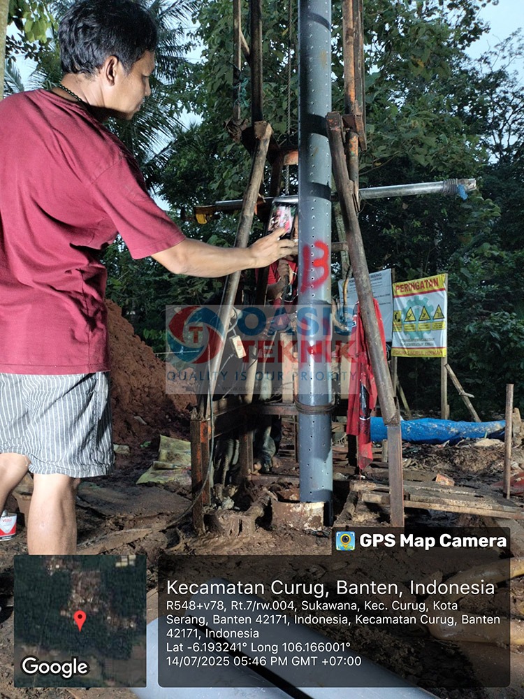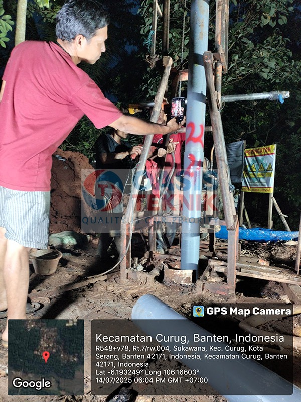 Proyek Sumur Bor di Kelurahan Sukawana, Kecamatan Curug, Kota Serang dilaksanakan sebagai bagian dari program penyediaan air bersih untuk masyarakat setempat. Dengan kedalaman pengeboran mencapai 100 meter dan menggunakan pipa PVC berdiameter 6 inch, proyek ini ditujukan untuk menjangkau lapisan akuifer yang berada di bawah formasi tanah keras dan bebatuan. Kondisi geologi yang cukup menantang membutuhkan penggunaan peralatan bor bertenaga tinggi serta tim teknis yang berpengalaman.