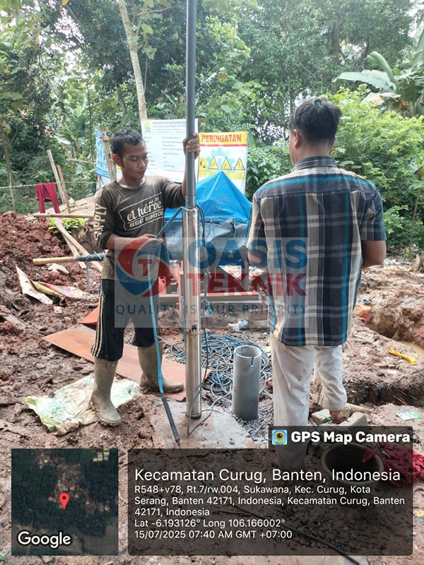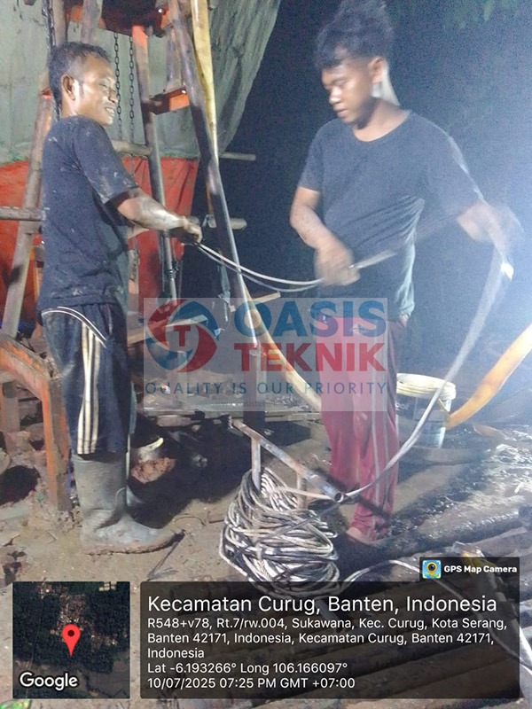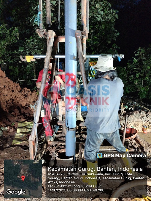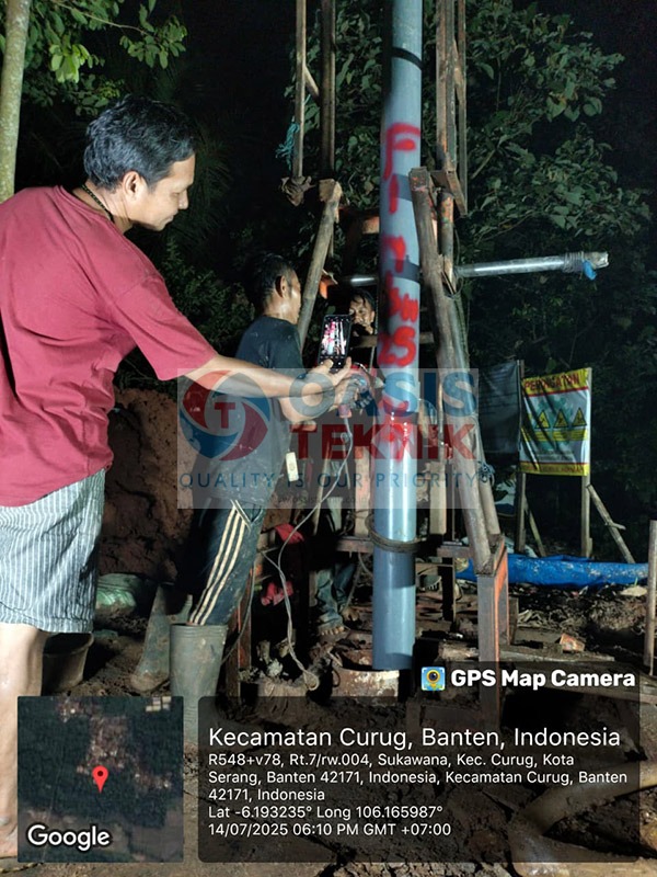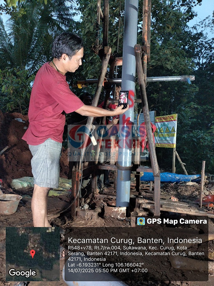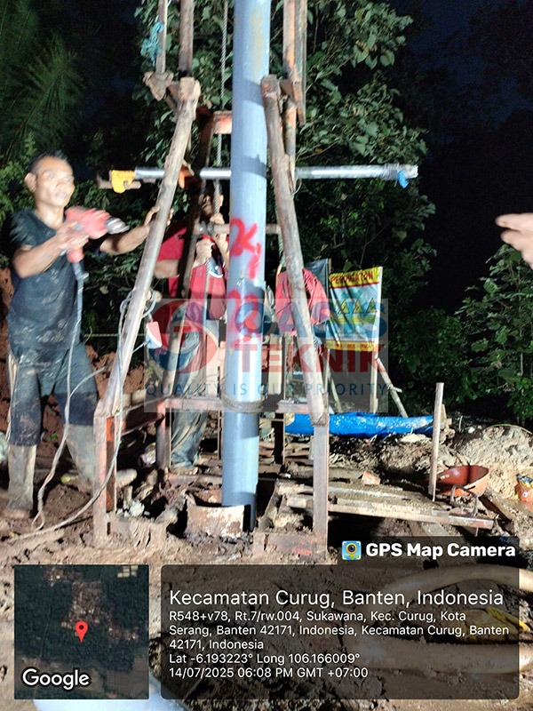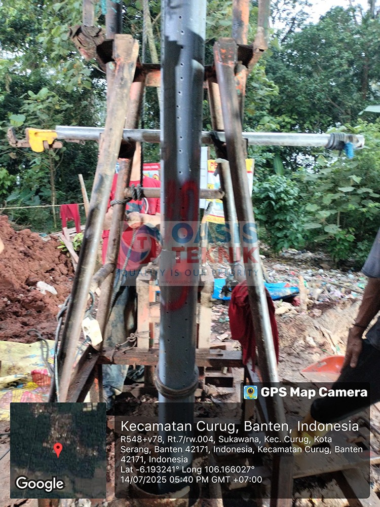 Proyek Sumur Bor di Kelurahan Sukawana, Kecamatan Curug, Kota Serang dilaksanakan sebagai bagian dari program penyediaan air bersih untuk masyarakat setempat. Dengan kedalaman pengeboran mencapai 100 meter dan menggunakan pipa PVC berdiameter 6 inch, proyek ini ditujukan untuk menjangkau lapisan akuifer yang berada di bawah formasi tanah keras dan bebatuan. Kondisi geologi yang cukup menantang membutuhkan penggunaan peralatan bor bertenaga tinggi serta tim teknis yang berpengalaman.